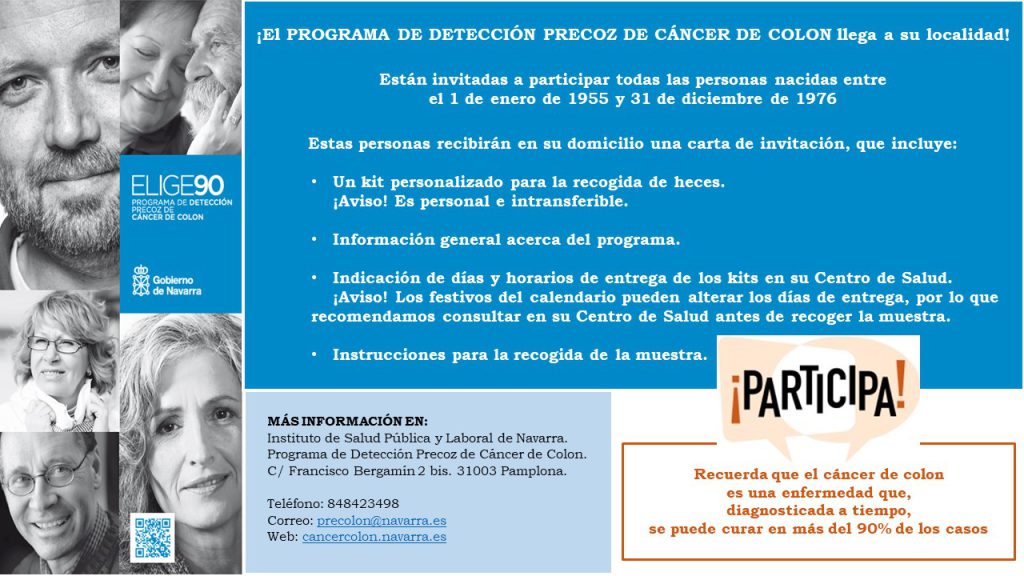 Por este motivo, el Departamento de Salud del Gobierno de Navarra puso en marcha el Programa de Detección Precoz de Cáncer de Colon y ofrece la posibilidad de realizar de forma totalmente gratuita una prueba para poder detectarlo a tiempo.